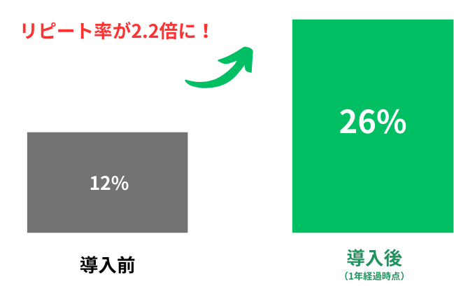 Liglaを導入したことで、リピート率は導入当初の約12%から1年経ったいまでは26%まで向上しました。また、サイトのアクティブユーザー数も約3,500人から3万1000人へと大幅に増加。