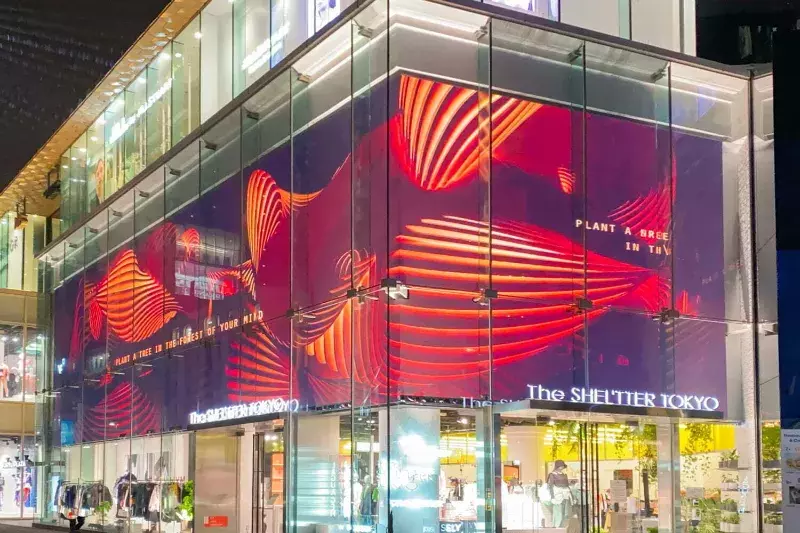 同店は外観にあるデジタルサイネージでブランドムービーなどを表示するほか、店内ではECサイトとライブ配信を組み合わせるライブコマースを行うスタジオが併設されるなど、OMO(※)の拠点としての役割を担っています。